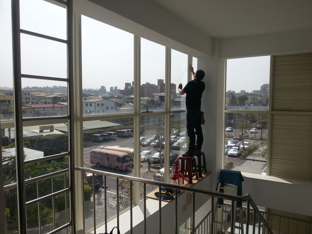 施工時特別注意貼膜平整度與邊角收邊,讓窗面外觀一致整潔,避免產生波紋與視覺扭曲,確保洽公窗口與內部辦公視線清晰,維持公共機關應有的明亮與專業形象。