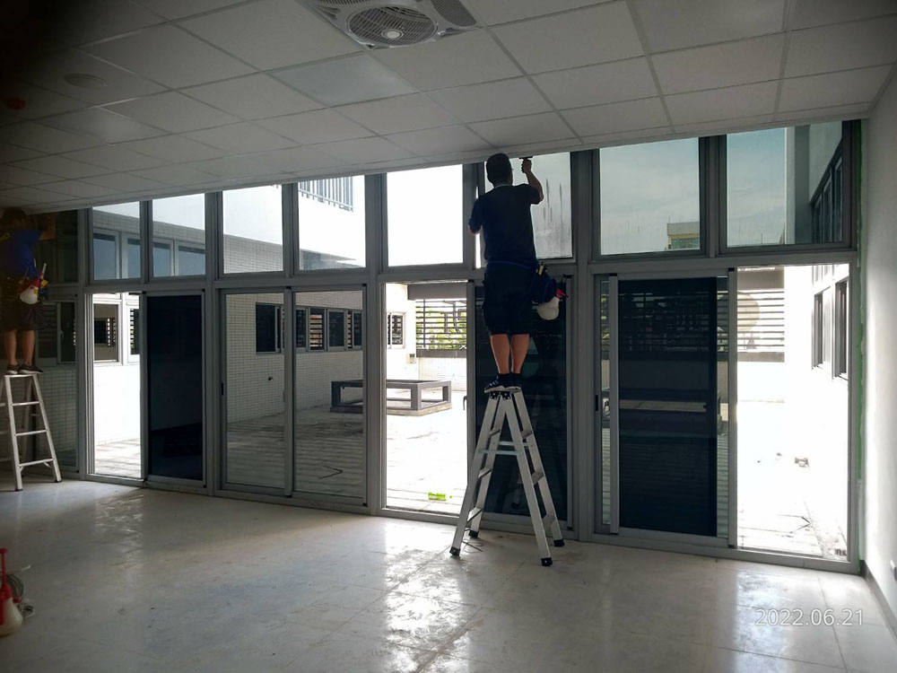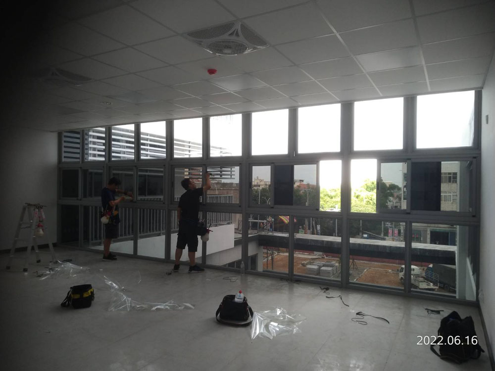 施工前先針對主要曝曬窗面與洽公區採光需求進行評估,選用兼具透光與隔熱效果的膜材,降低紅外線熱能進入,同時阻隔紫外線以延緩室內材料老化與褪色,並維持公共空間明亮感,讓民眾洽公動線與視線判讀不受影響。
