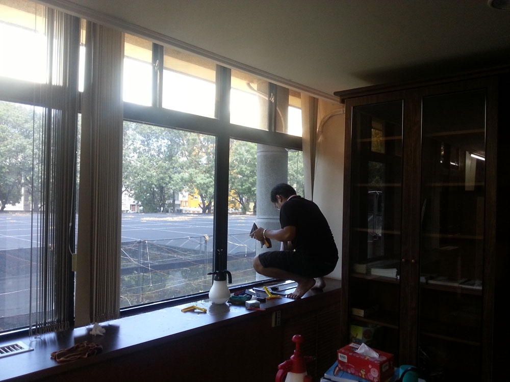 施工前先確認玻璃既有狀況與展示區採光需求,針對視線高度與主要出入口區域,選用透光度穩定且具黏著強度的隔熱防爆膜,使貼覆後不影響館內明亮感,同時降低紫外線對展品與設備的影響,減少褪色與材質老化問題。