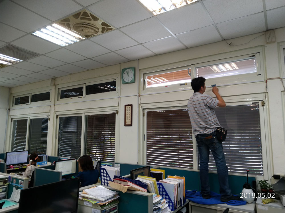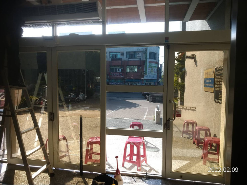施工時特別注意貼膜平整度與邊角收邊,讓窗面外觀一致整潔,避免產生波紋與視覺扭曲,確保洽公窗口與內部辦公視線清晰,維持公共機關應有的明亮與專業形象。