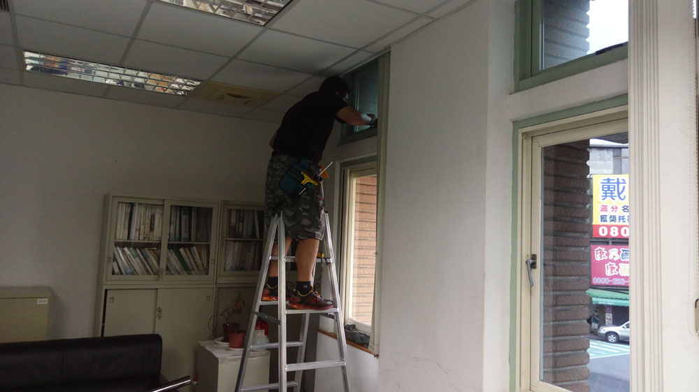 施工團隊在貼覆過程中控制貼合速度與刮除水分方式,避免出現水痕與氣泡,收邊整齊一致,確保公共空間外觀維持俐落乾淨,不影響機關形象。