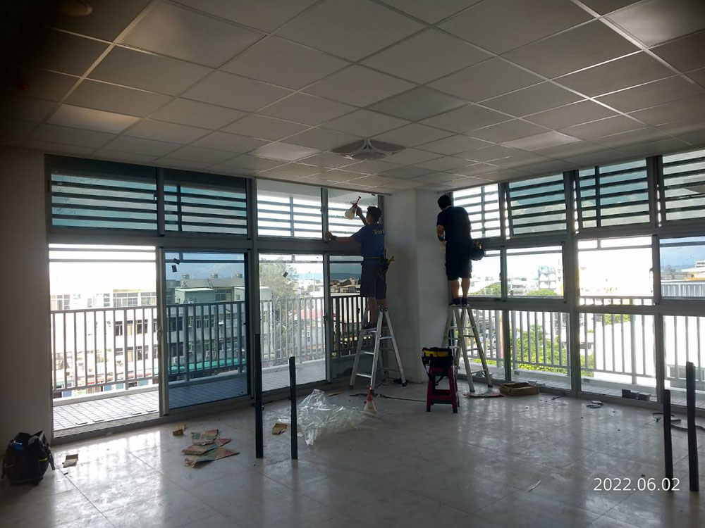 施工前先針對主要曝曬窗面與洽公區採光需求進行評估,選用兼具透光與隔熱效果的膜材,降低紅外線熱能進入,同時阻隔紫外線以延緩室內材料老化與褪色,並維持公共空間明亮感,讓民眾洽公動線與視線判讀不受影響。
